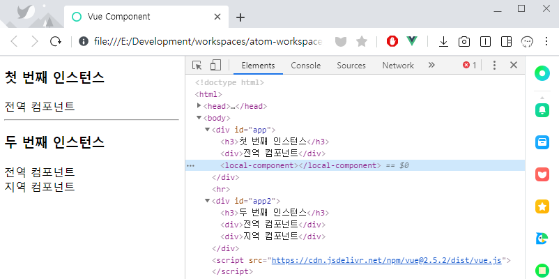 - 라이브러리 로딩 → 전역 컴포넌트 등록(Vue.component()) → 인스턴스 객체 생성